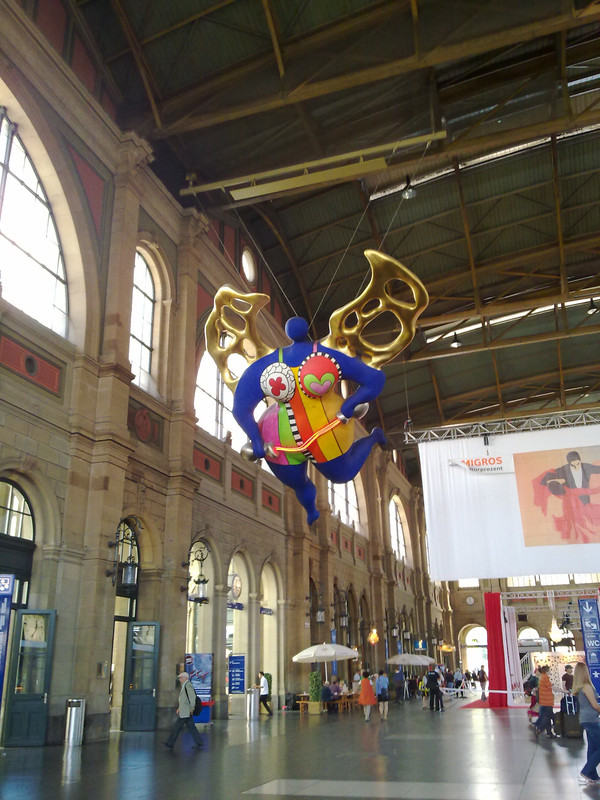 Está situada en el interior del vestíbulo de la estación de tren de Zurich-HB (Hauptbahnhof). El ángel de la guarda está colgado del techo del hall principal gracias a unos cables. Se puede observar durante todo el año.